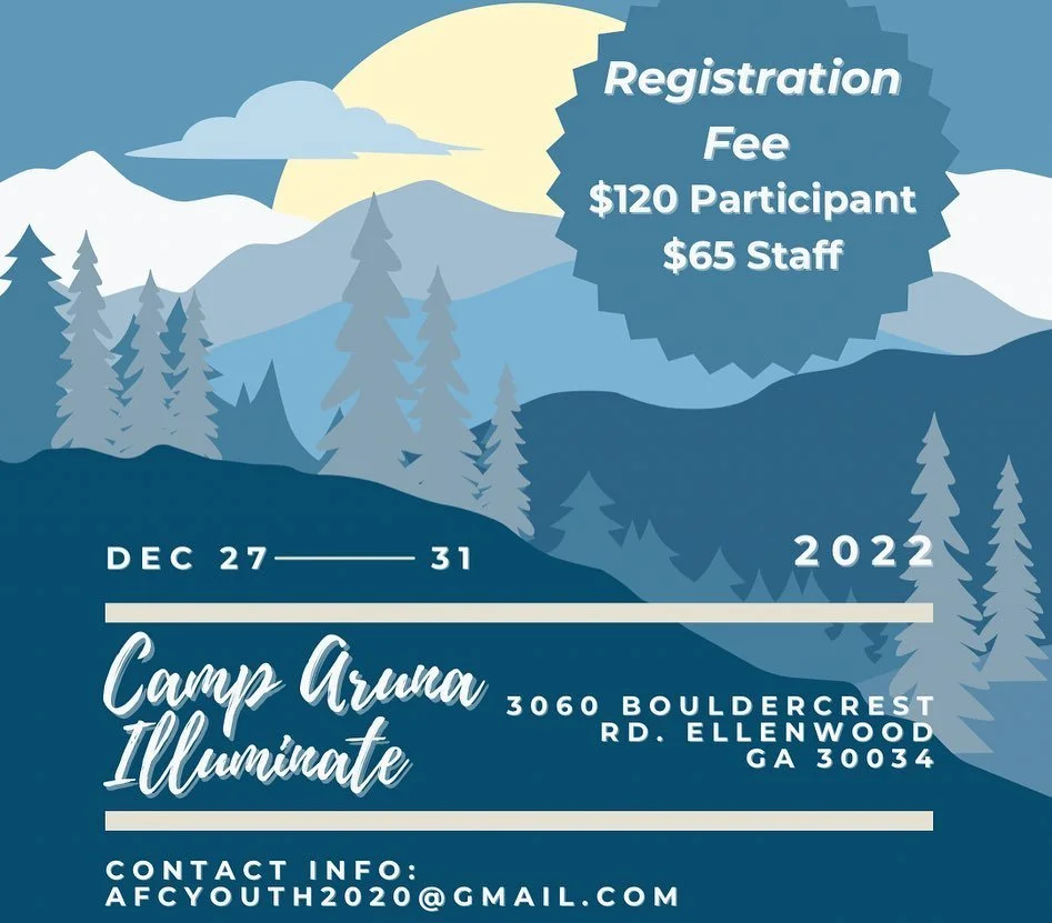 Location: Camp Aruna (3060 Bouldercrest Rd. Ellenwood, GA 30034)
